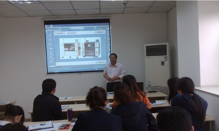 由重慶大學(xué)主辦的全國(guó)電子類中職教師國(guó)家級(jí)培訓(xùn)項(xiàng)目,第一期重慶地區(qū)8所中職學(xué)校30余名教師在重慶普天普科通信技術(shù)公司進(jìn)行2周的培訓(xùn)。2013年3月28日全天,西南交通大學(xué)龍緒明教授作了先進(jìn)電子制造技術(shù)和中國(guó)電子學(xué)會(huì)SMT專業(yè)技術(shù)資格認(rèn)證培訓(xùn)和考評(píng)云平臺(tái)的專題報(bào)告。