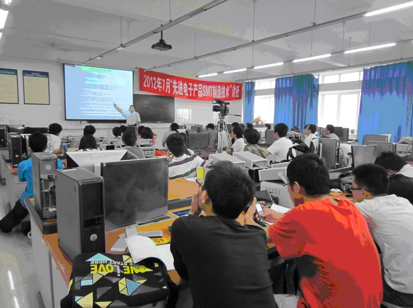 2012年7月9日,常州奧施特公司與西南交通大學(xué)共建先進(jìn)電子SMT制造實(shí)驗(yàn)室,并在“SMT專業(yè)技術(shù)資格認(rèn)證培訓(xùn)和考評(píng)平臺(tái)AutoSMT-VM1.1”上對(duì)茅班優(yōu)秀生進(jìn)行為期9天實(shí)訓(xùn)。不僅使學(xué)生進(jìn)一步掌握EDA電路設(shè)計(jì)技術(shù),更使學(xué)生了解電子產(chǎn)品是如何制造出來的,使學(xué)生了解和掌握現(xiàn)代先進(jìn)電子大制造技術(shù),徹底改變了傳統(tǒng)的一把烙鐵學(xué)電子的教學(xué)模式。
