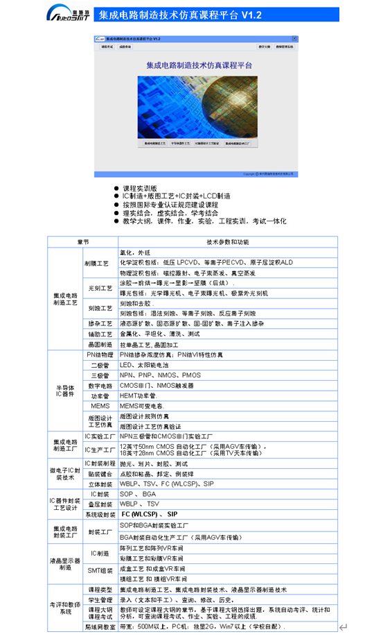 微電子IC制造技術虛擬培訓平臺V1.0